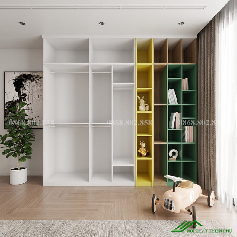Tủ quần áo kết hợp kệ trang trí - QA 92