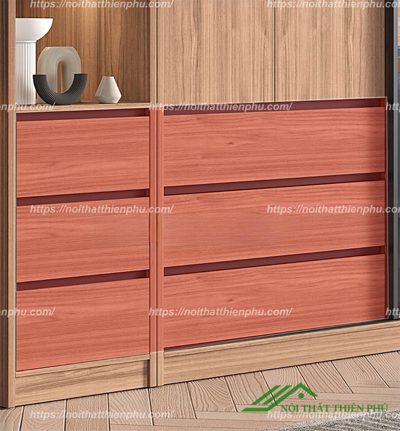 Bề mặt tủ được hoàn thiện mịn, dễ lau chùi, giúp việc vệ sinh trở nên nhẹ nhàng và nhanh chóng. Với những gia đình sử dụng tủ quần áo hằng ngày, yếu tố này mang lại sự tiện lợi rõ rệt trong quá trình sử dụng lâu dài.