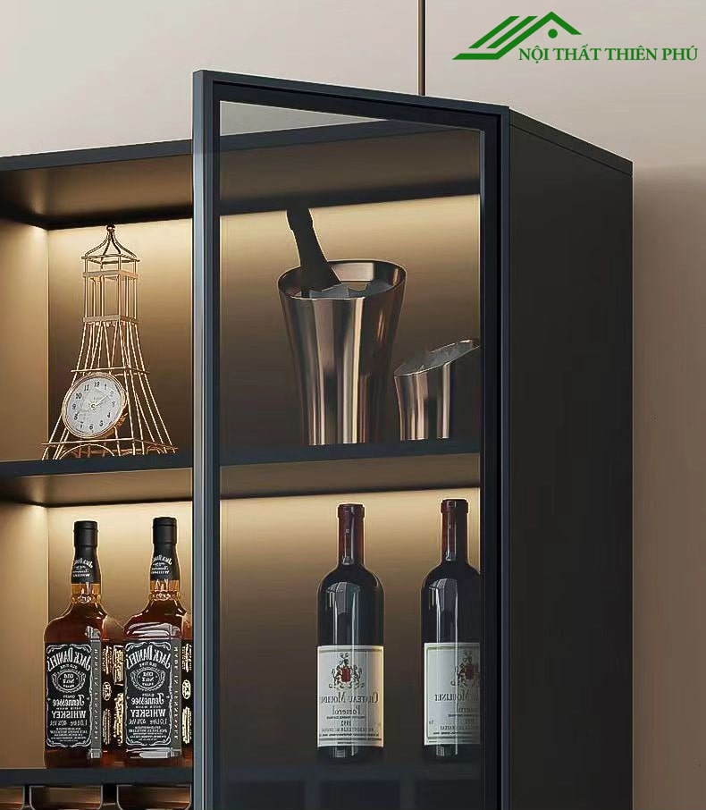 Đèn LED Sáng Sủa: Một điểm nhấn đặc biệt của Tủ Rượu Gỗ 3 Cánh - TR 04 là việc tích hợp đèn LED sáng sủa. Đèn LED không chỉ làm cho tủ trở nên sang trọng và lôi cuốn hơn vào buổi tối mà còn giúp bạn dễ dàng nhìn rõ từng chi tiết của những chai rượu quý giá trong tủ.
