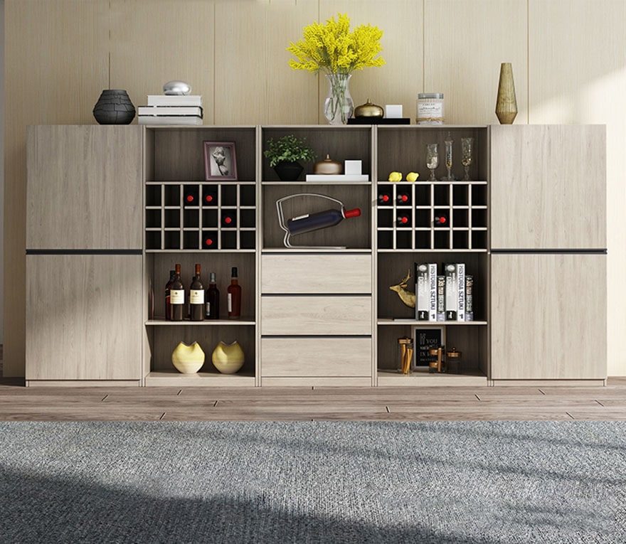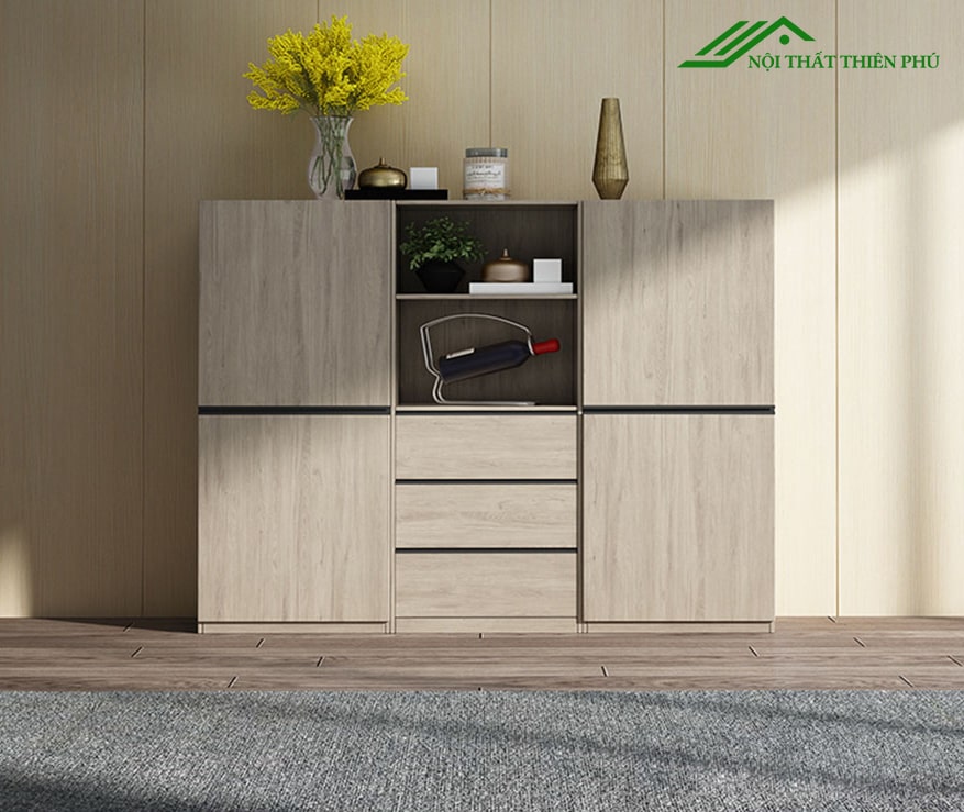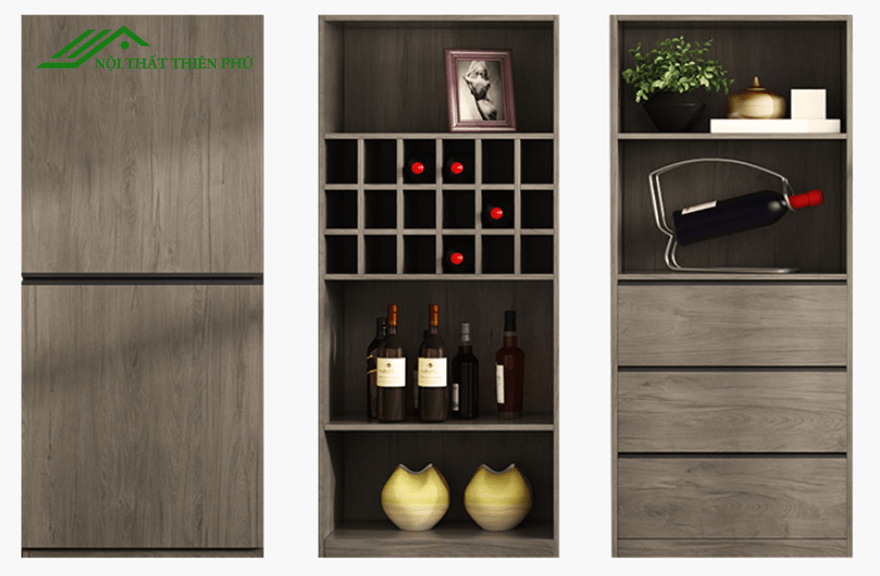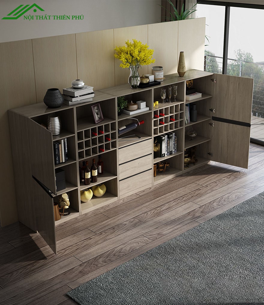 Tủ rượu gỗ công nghiệp dáng thấp - TR 15 với nhiều không gian chứa đồ