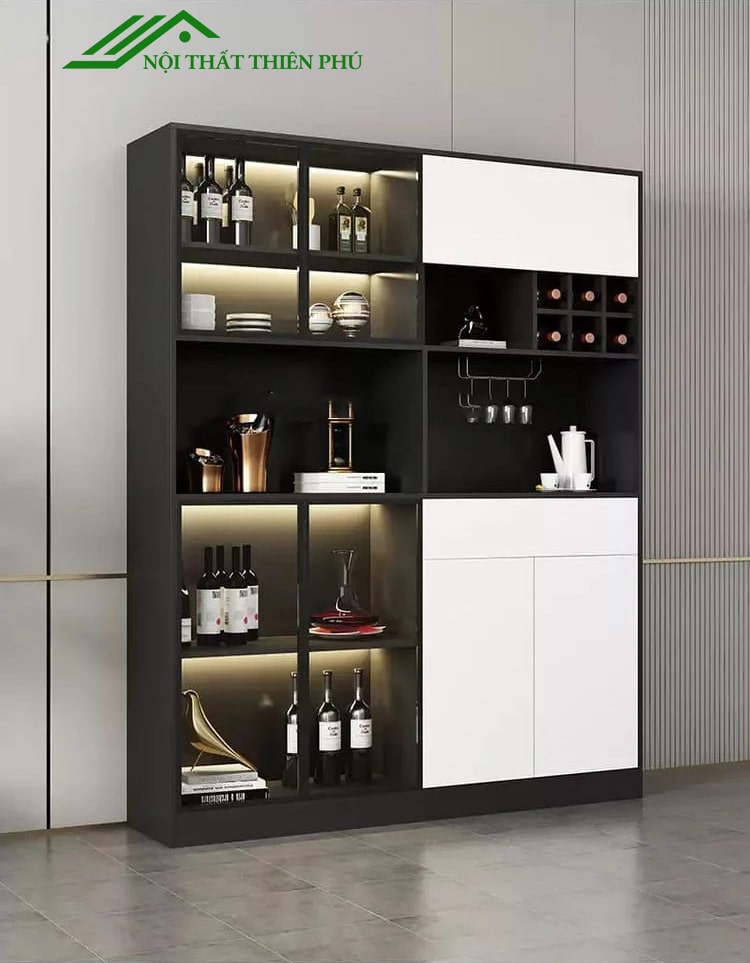 Tủ rượu gỗ trưng bày hiện đại - TR 28 với nhiều không gian lưu trữ đồ