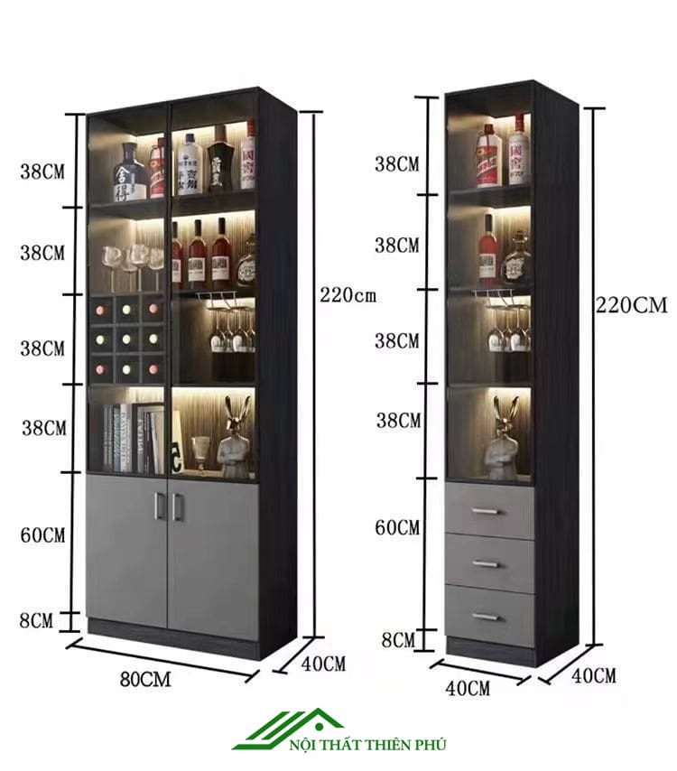 Tham khảo thông số kỹ thuật chung của mẫu tủ rượu phòng khách 2 cánh