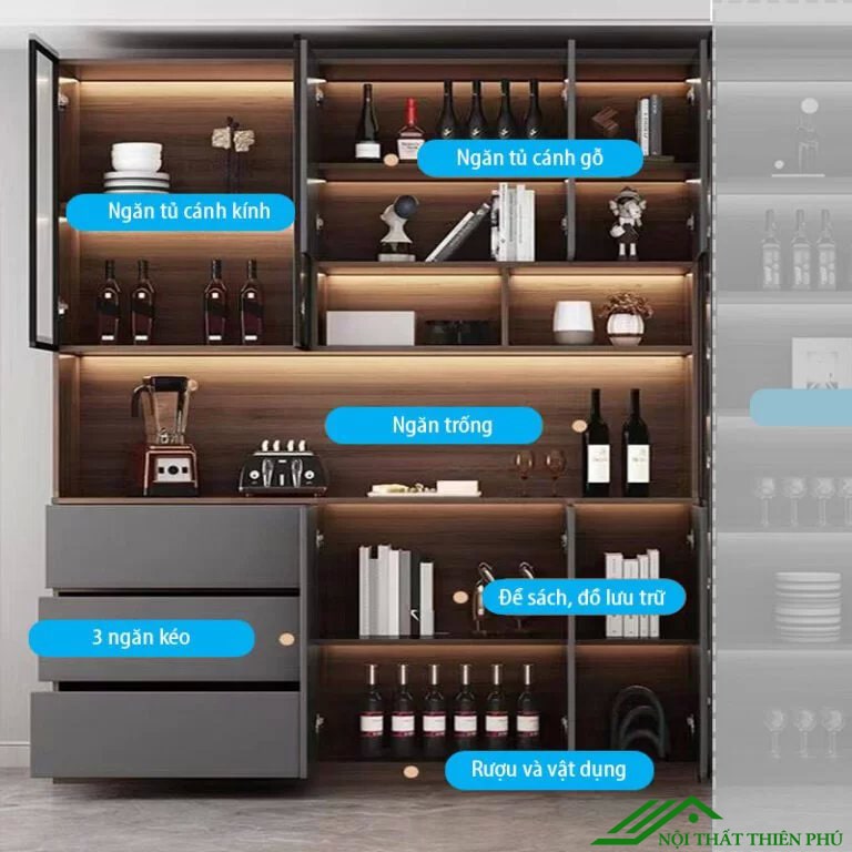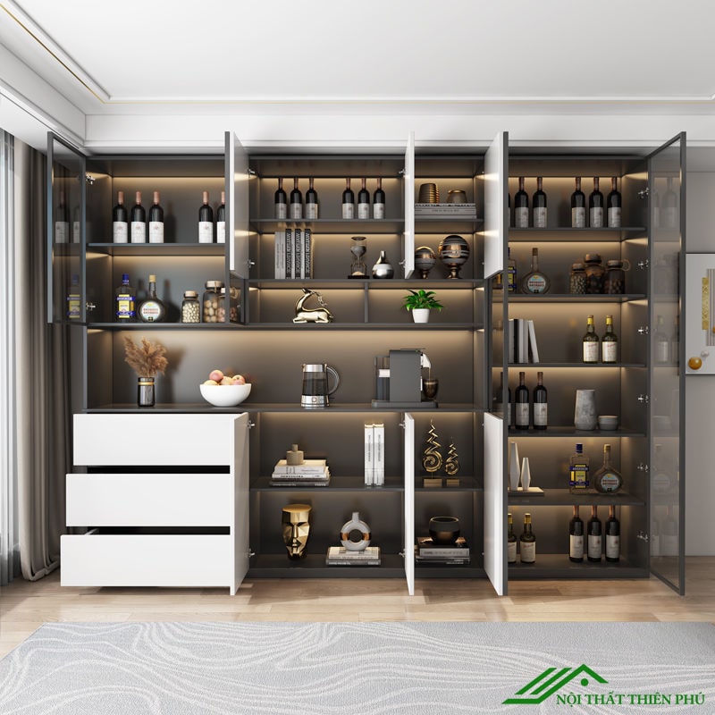 Tủ rượu phòng khách 2m đa năng - TR 08 nhiều ngăn tủ tiện lợi