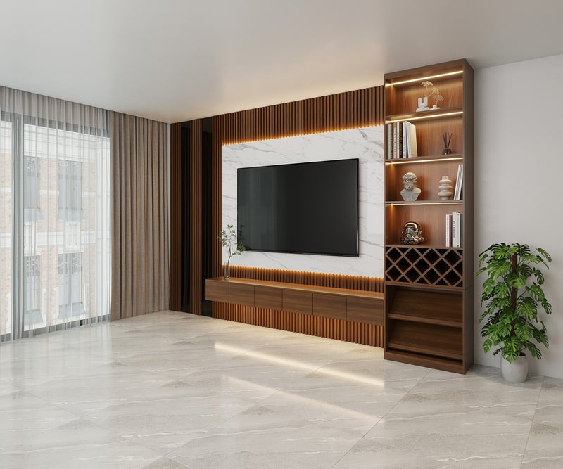Vách kệ tivi hiện đại - TV 57 đem lại cho chủ đầu tư những ưu điểm như thế nào?