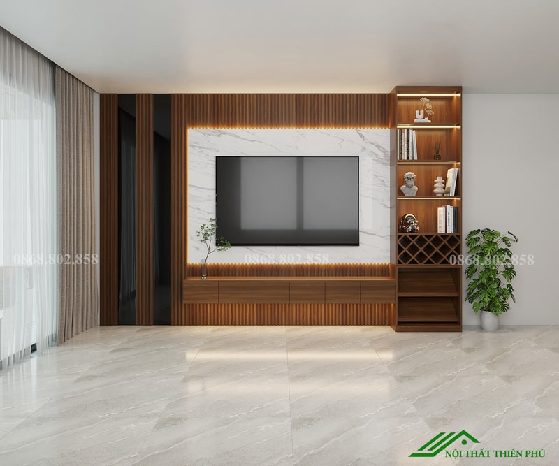 Tóm lại, vách kệ tivi hiện đại - TV 57 là lựa chọn lý tưởng cho những ai đang tìm kiếm một sản phẩm vừa thẩm mỹ, vừa thực tế và có giá trị sử dụng lâu dài. Với sự kết hợp hài hòa giữa công năng, phong cách và độ bền, TV 57 chắc chắn sẽ làm hài lòng các chủ đầu tư khó tính nhất. Liên hệ ngay với chúng tôi để được tư vấn và hỗ trợ tốt nhất.